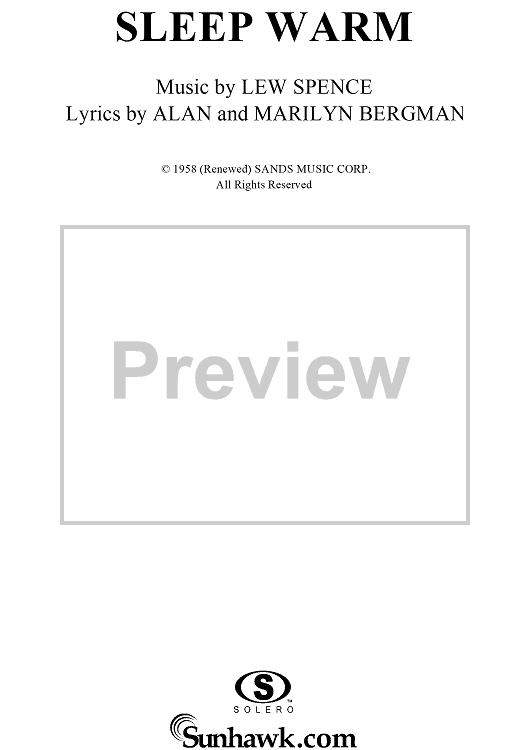 Digital Sheet Music for Sleep Warm by Frank Sinatra, Alan Bergman, Marilyn Bergman, Lew Spence scored for Piano/Vocal/Chords; id:113466