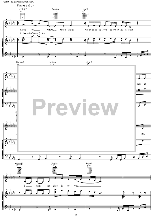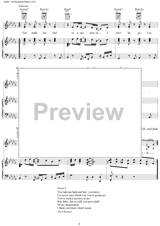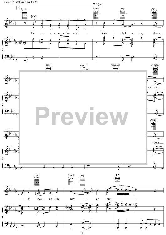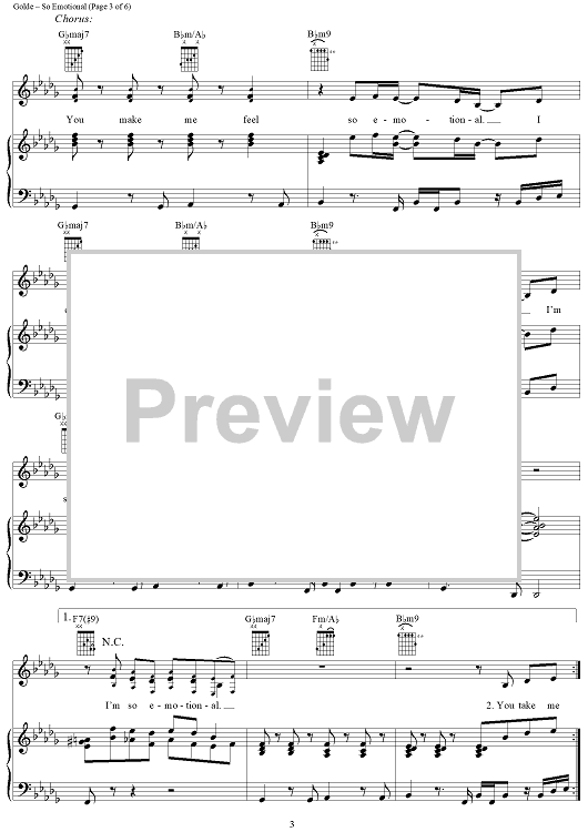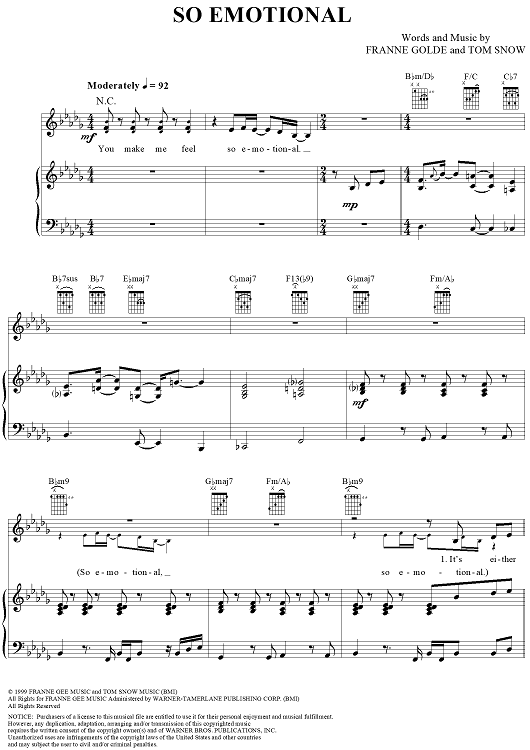 Digital Sheet Music for So Emotional by Tom Snow, Franne Golde, Christina Aguilera scored for Piano/Vocal/Chords; id:197216