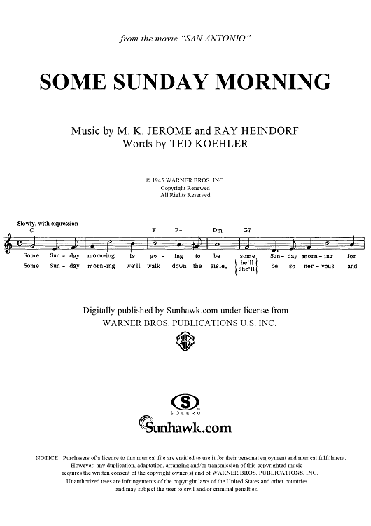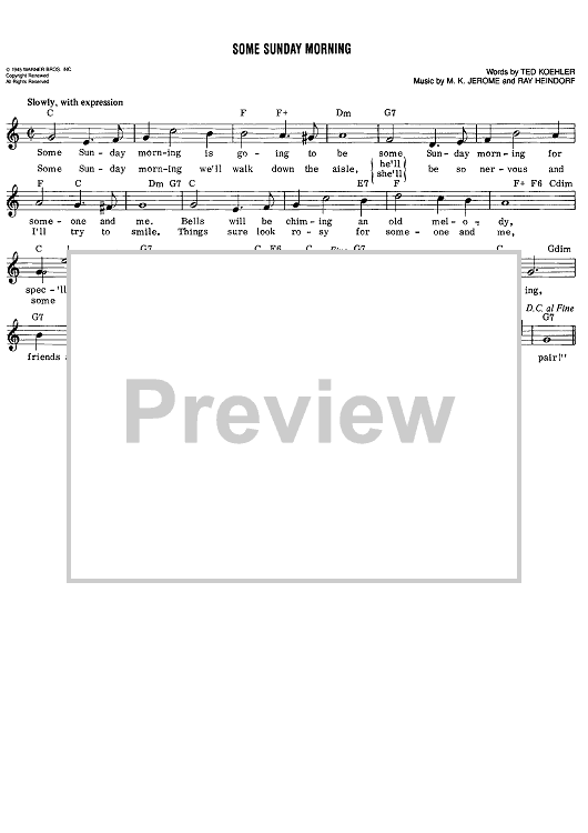 Digital Sheet Music for Some Sunday Morning by Ted Koehler, Ray Heindorf, M. K. Jerome scored for Lead Sheet; id:220735