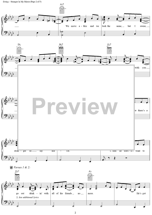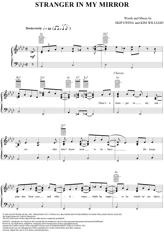 Digital Sheet Music for Stranger in My Mirror by Randy Travis, Skip Ewing, Kim Williams scored for Piano/Vocal/Chords; id:124155
