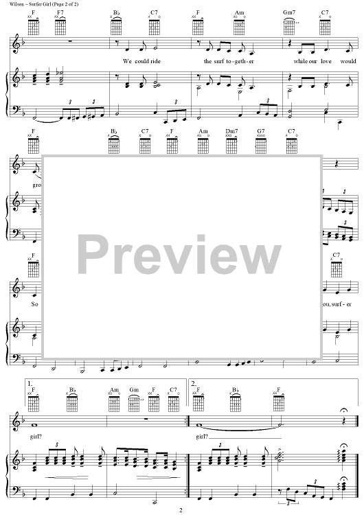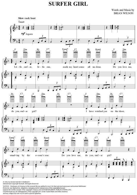 Digital Sheet Music for Surfer Girl by Brian Wilson, The Beach Boys scored for Piano/Vocal/Chords; id:117851