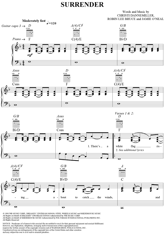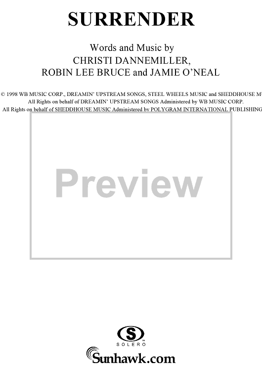 Digital Sheet Music for Surrender by LeAnn Rimes, Robin Lee Bruce, Brian O'Neal, Christi Dannemiller scored for Piano/Vocal/Chords; id:131640