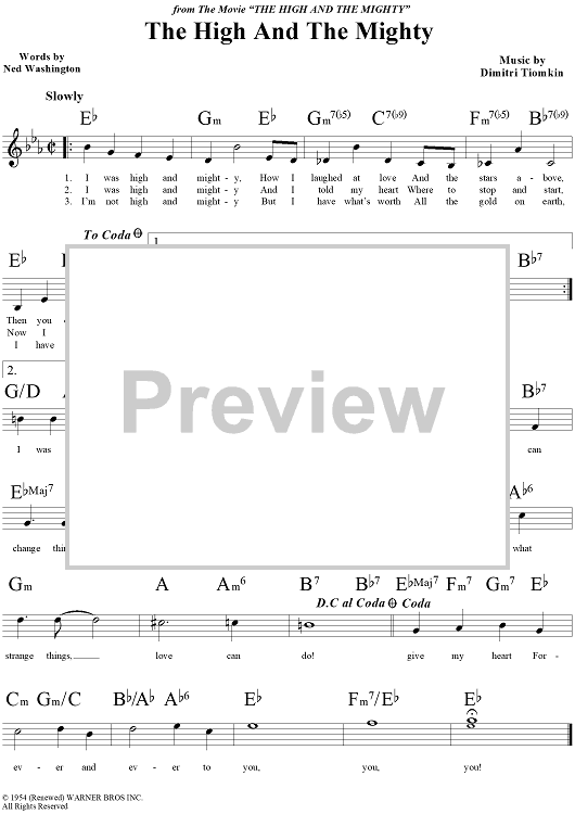 Digital Sheet Music for The High and the Mighty by Dimitri Tiomkin, Ned Washington, Victor Young, Leroy Holmes scored for Lead Sheet; id:111983