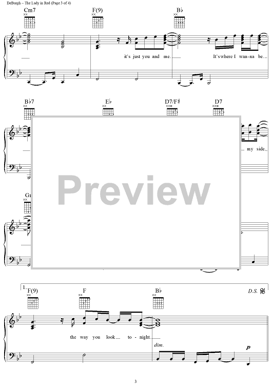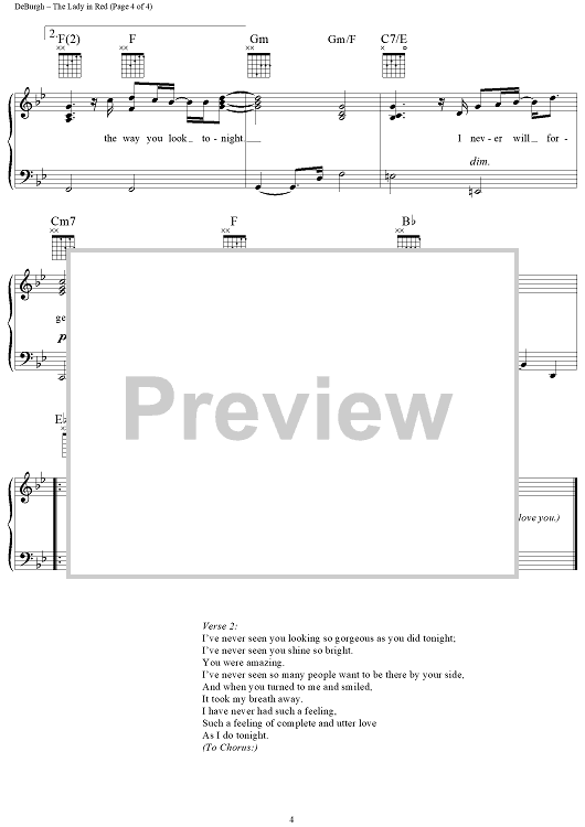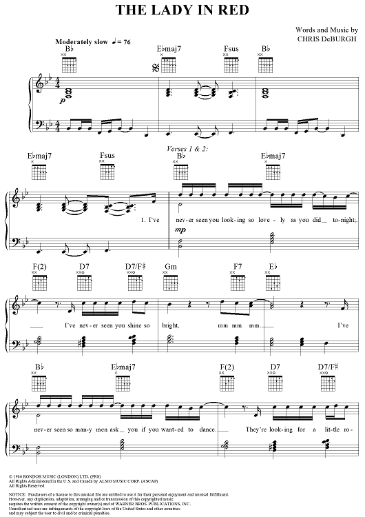 Digital Sheet Music for The Lady In Red by Chris DeBurgh scored for Piano/Vocal/Chords; id:119706