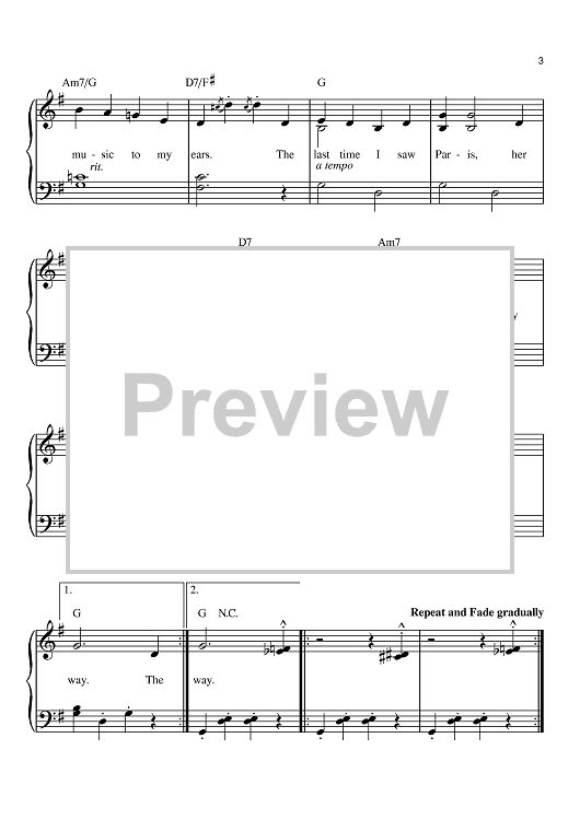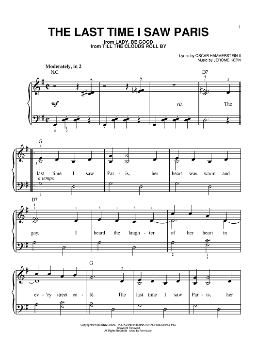 Digital Sheet Music for The Last Time I Saw Paris by Jerome Kern, Oscar Hammerstein II scored for Easy Piano; id:390469