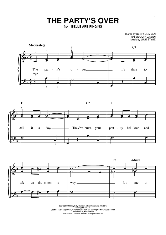 Digital Sheet Music for The Party's Over by Jule Styne, Betty Comden, Adolph Green scored for Easy Piano; id:390478