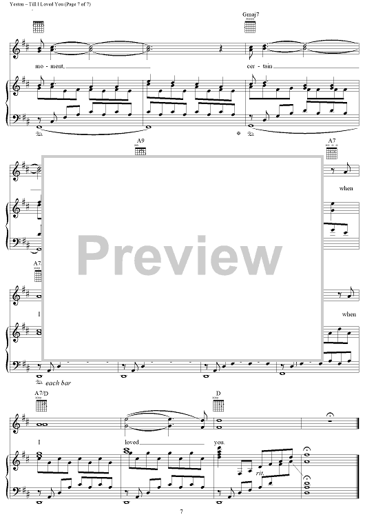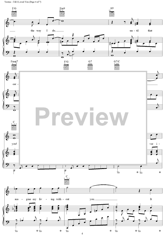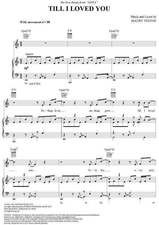 Digital Sheet Music for Till I Loved You by Maury Yeston, Barbra Streisand scored for Piano/Vocal/Chords; id:124108