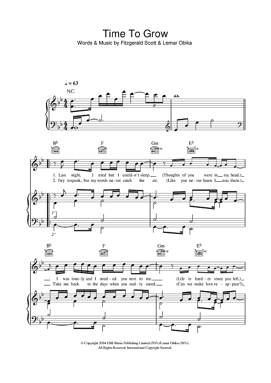Digital Sheet Music for Time To Grow by Fitzgerald Scott, Lemar, Lemar Obika scored for Piano/Vocal/Chords; id:386866