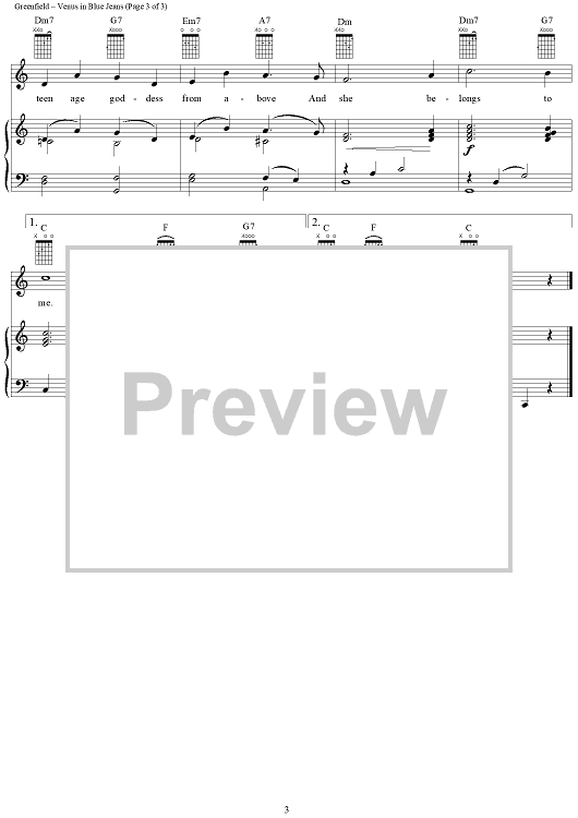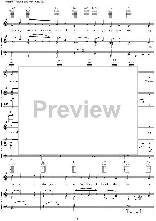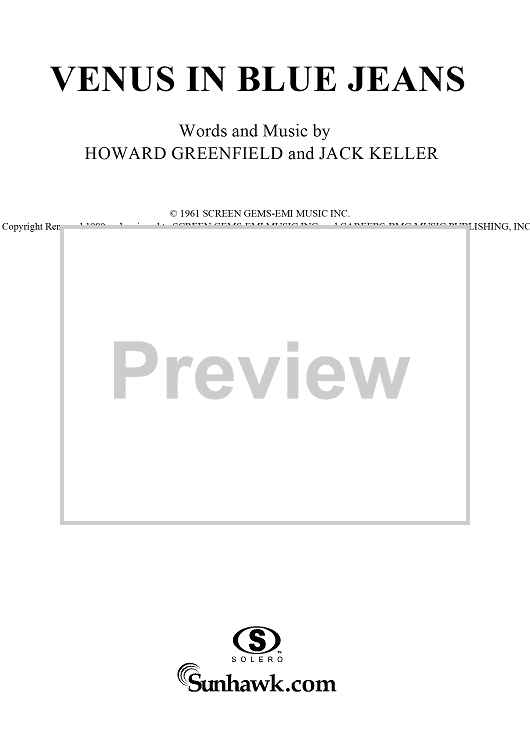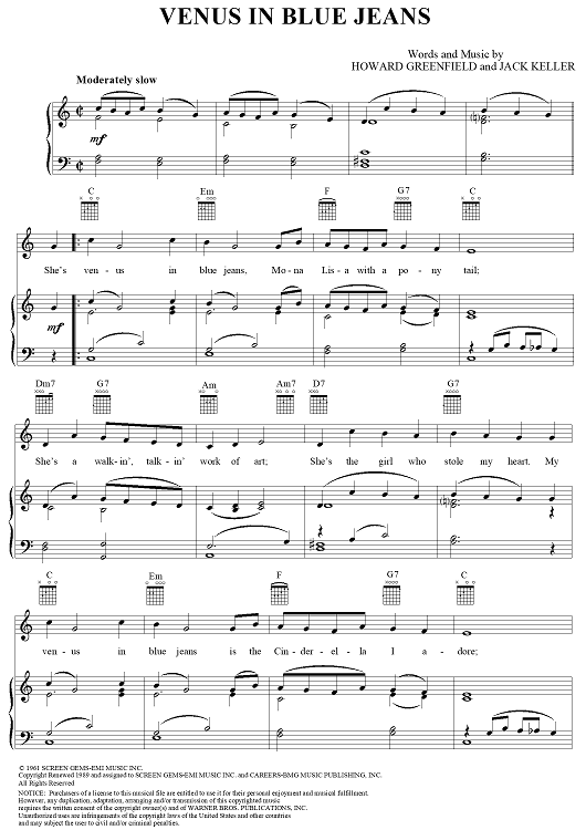Digital Sheet Music for Venus in Blue Jeans by Howard Greenfield, Jack Keller, Jimmy Clanton scored for Piano/Vocal/Chords; id:267604