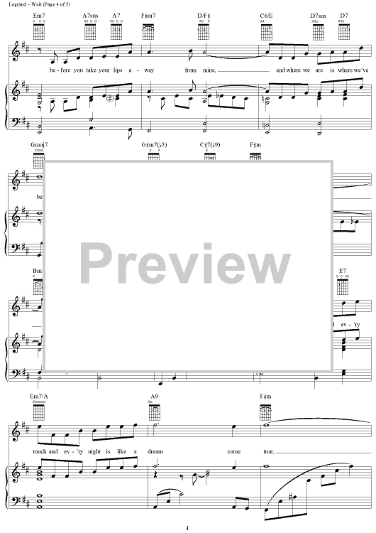 Digital Sheet Music for Wait by Michel LeGrand, Alan Bergman, Marilyn Bergman, Barbra Streisand scored for Piano/Vocal/Chords; id:126716