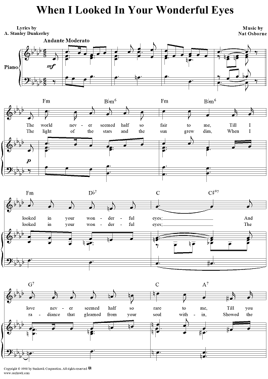 Digital Sheet Music for When I Looked In Your Wonderful Eyes by Nat Osborne, A. Stanley Dunkerley scored for Piano/Vocal/Chords; id:110342