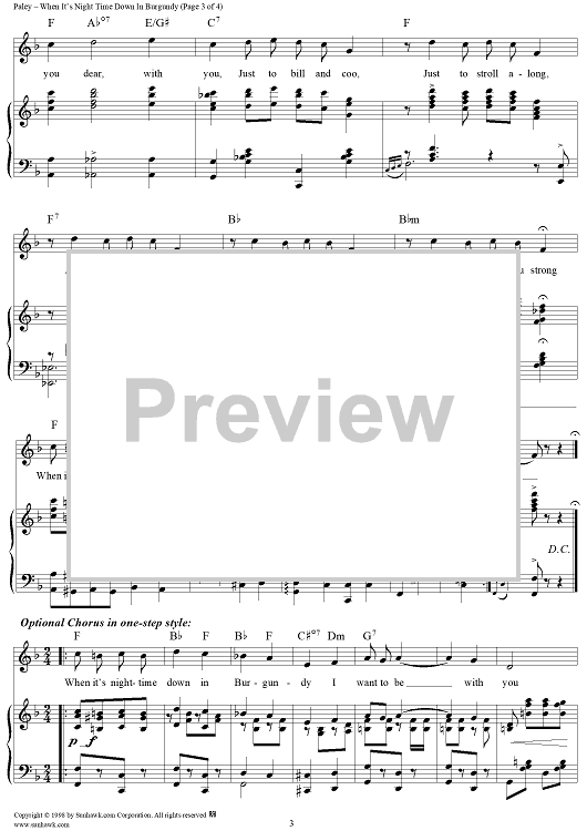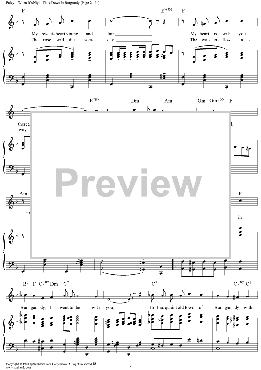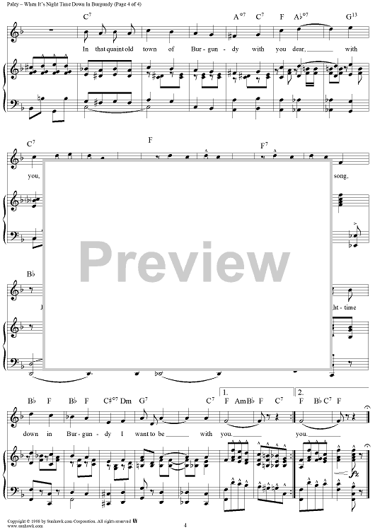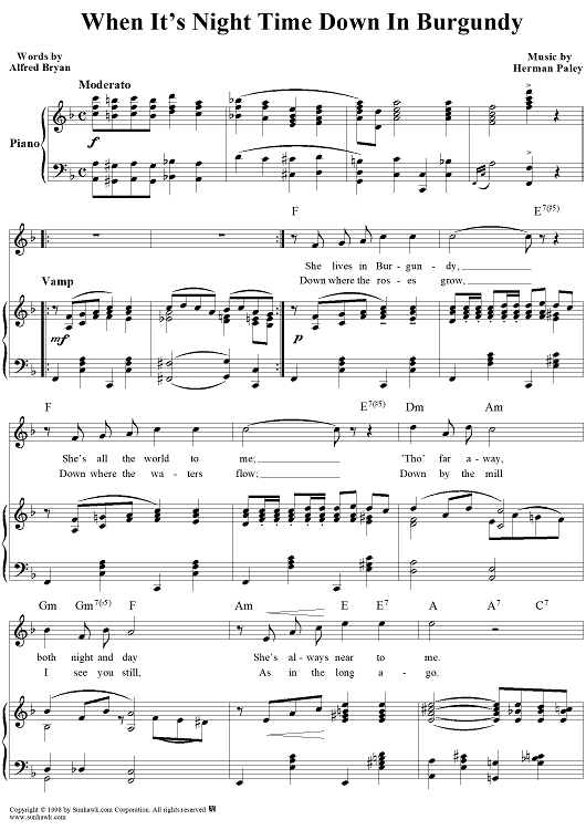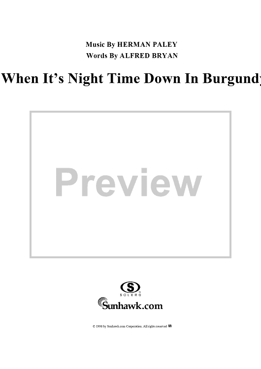 Digital Sheet Music for When It's Night Time Down in Burgundy by Herman Paley, Alfred Bryan scored for Piano/Vocal; id:118275
