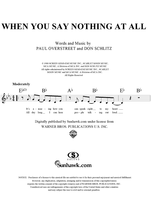 Digital Sheet Music for When You Say Nothing At All by Keith Whitley, Don Schlitz, Paul Overstreet scored for Lead Sheet; id:124170