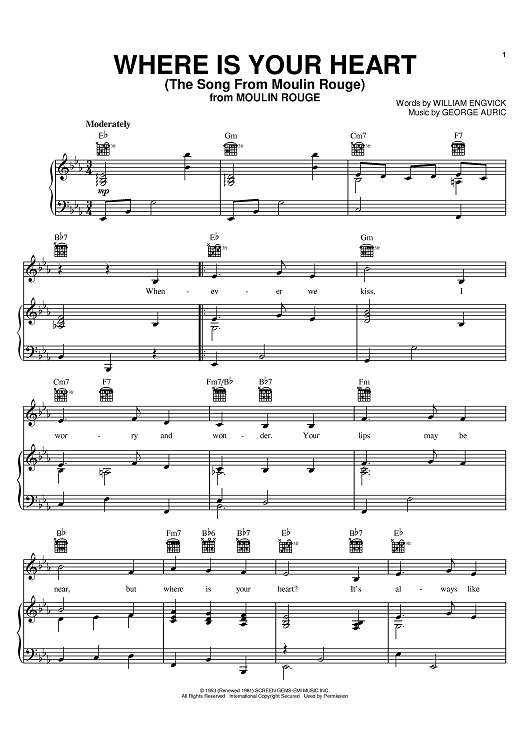 Digital Sheet Music for Where Is Your Heart by Percy Faith, Georges Auric, William Engvick scored for Piano/Vocal/Chords; id:386547