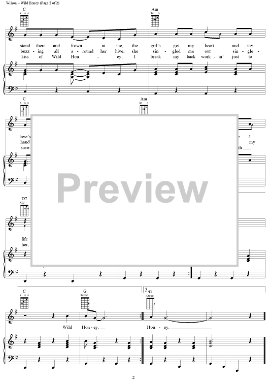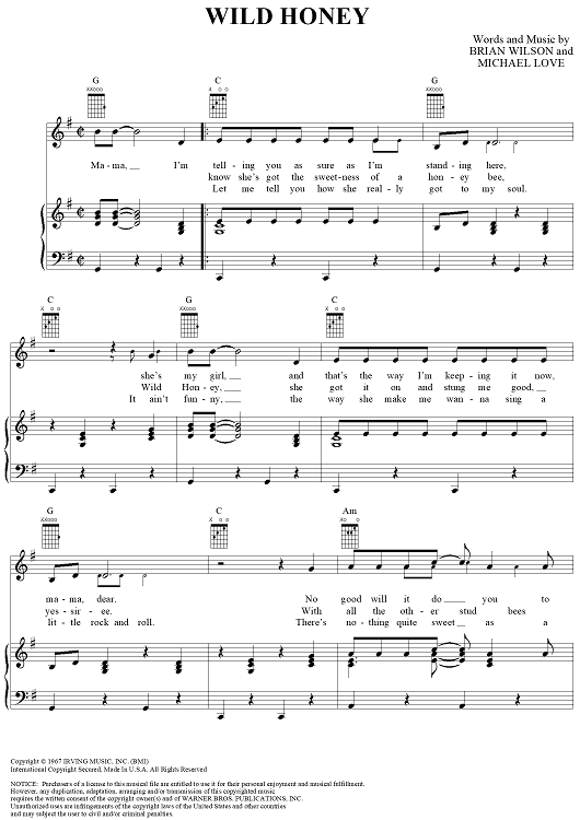 Digital Sheet Music for Wild Honey by Brian Wilson, The Beach Boys, Mike Love scored for Piano/Vocal/Chords; id:220546