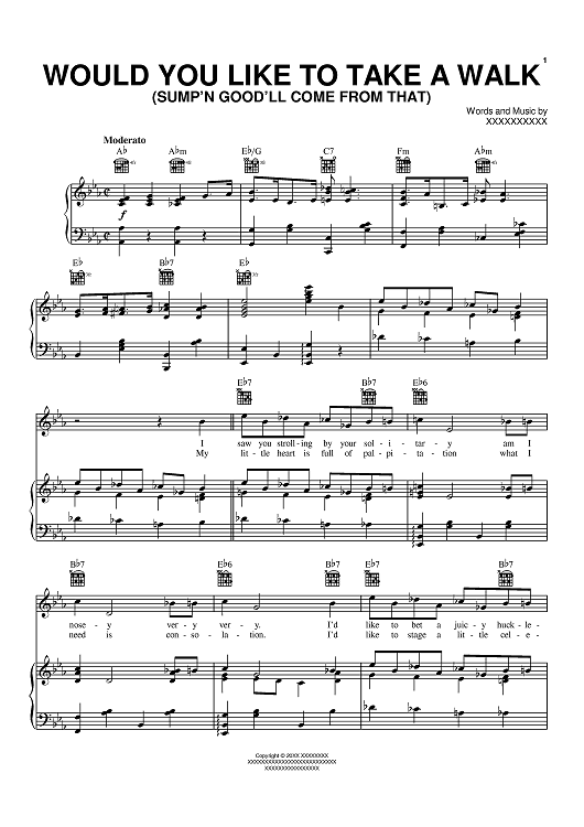 Digital Sheet Music for Would You Like To Take A Walk (Sump'n Good'll Come From That) by Harry Warren, Ella Fitzgerald, Billy Rose, Mort Dixon scored for Piano/Vocal/Chords; id:394204