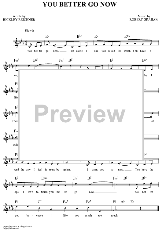 Digital Sheet Music for You Better Go Now by Robert Graham, Bickley Reichner scored for Lead Sheet; id:456920