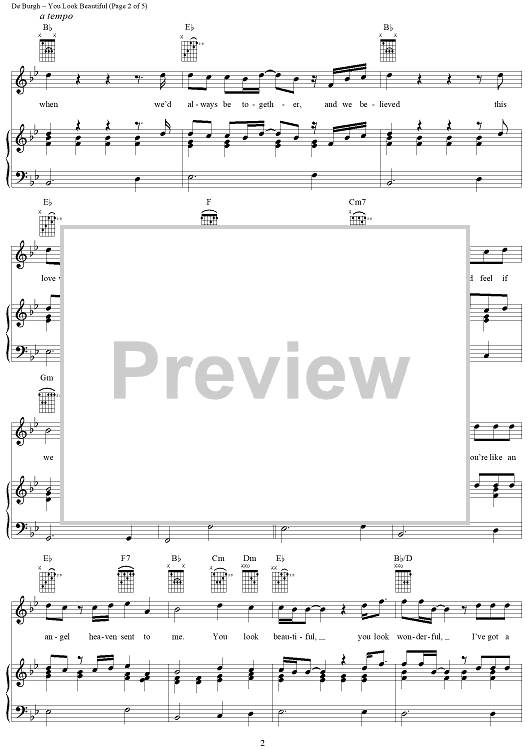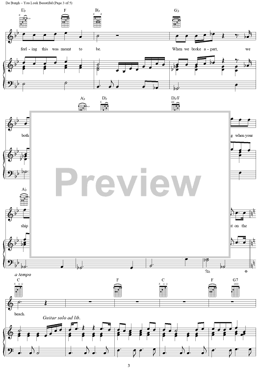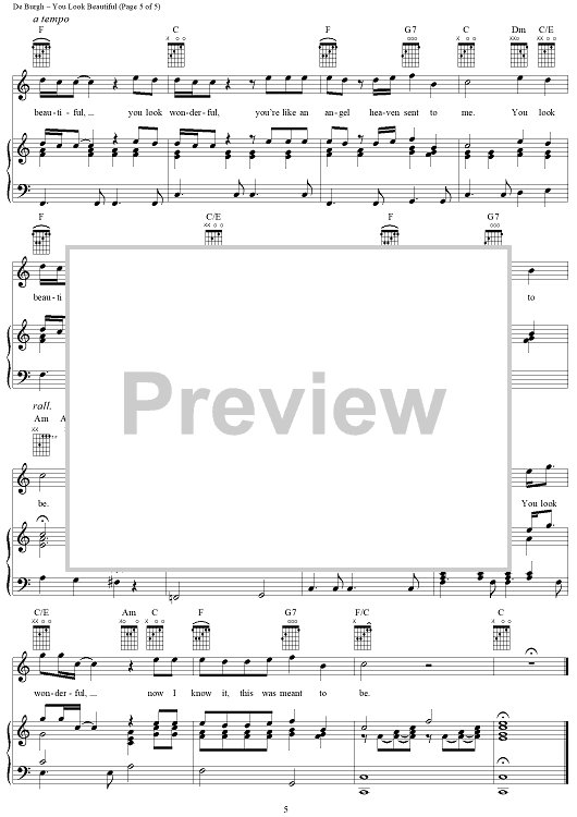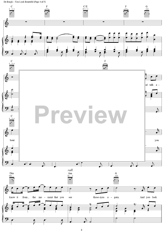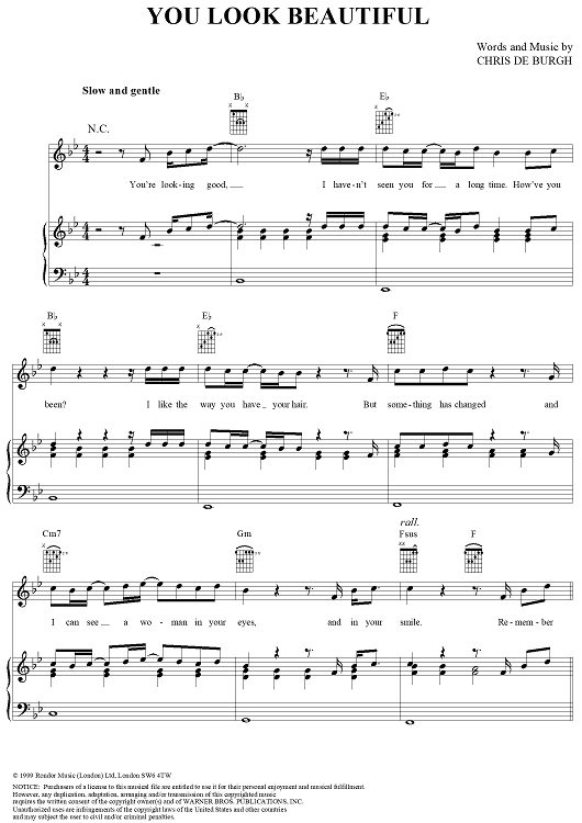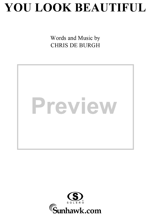 Digital Sheet Music for You Look Beautiful by Chris DeBurgh scored for Piano/Vocal/Chords; id:241606