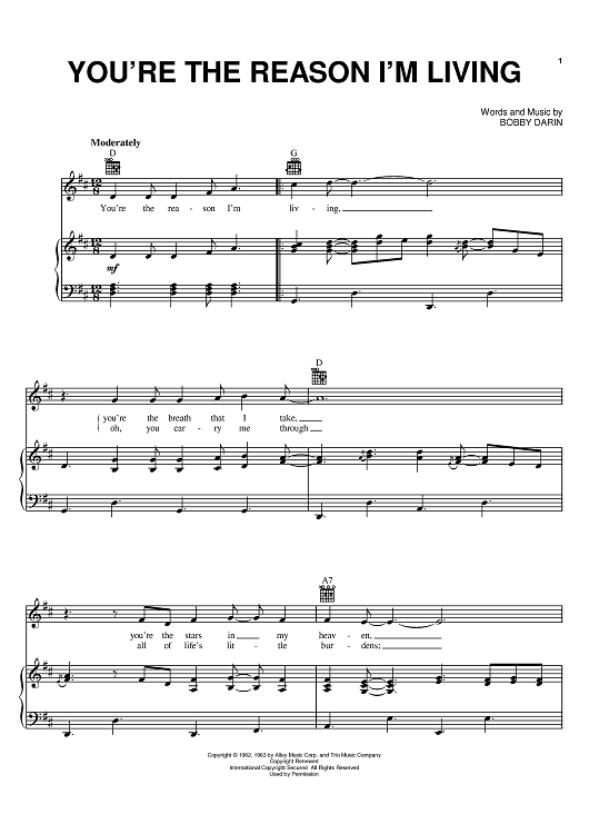 Digital Sheet Music for You're The Reason I'm Living by Bobby Darin scored for Piano/Vocal/Chords; id:388242