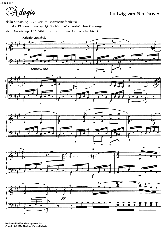Digital Sheet Music for Adagio from Pathetique Sonata by Ludwig van Beethoven scored for Piano Solo; id:329314