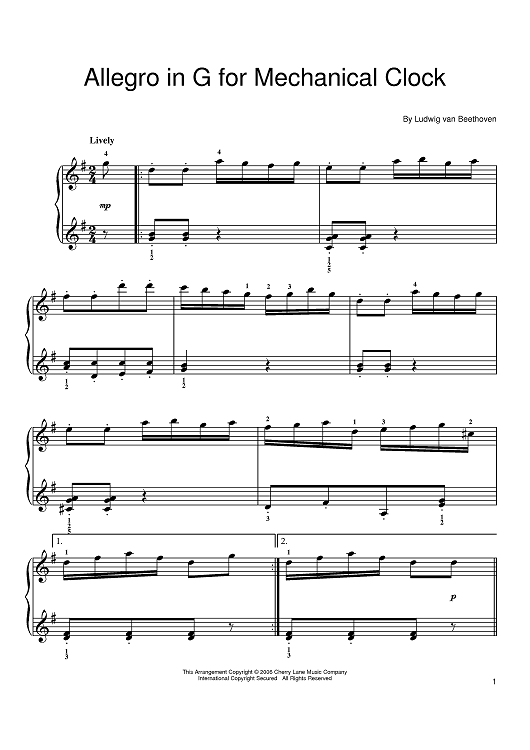 "Allegro in G for Mechanical Clock" Sheet Music by Ludwig van Beethoven