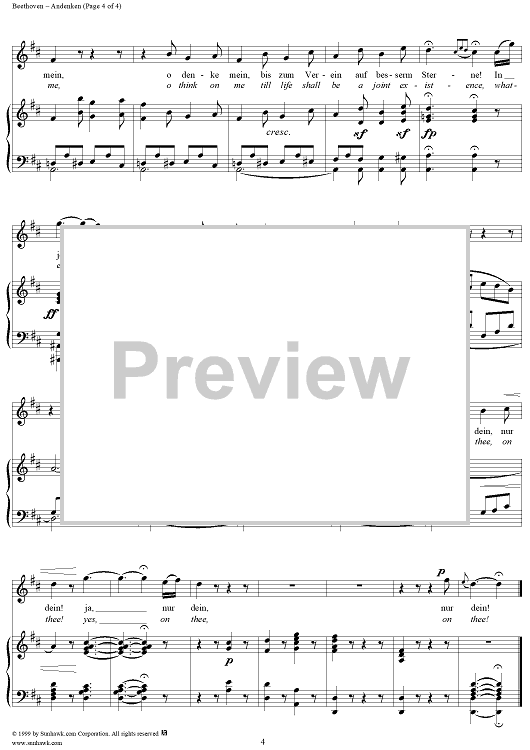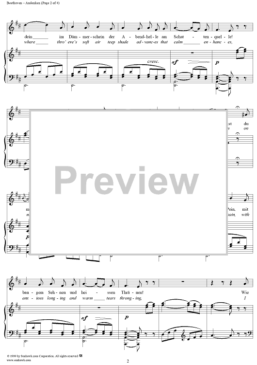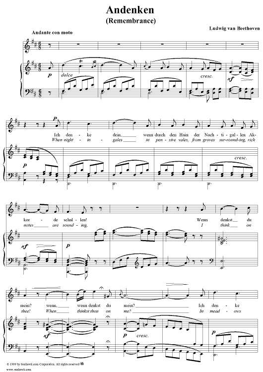 Digital Sheet Music for Andenken (Remembrance) by Ludwig van Beethoven scored for Voice/Piano; id:275474
