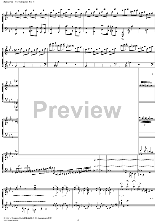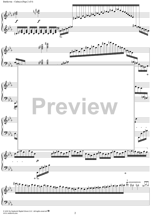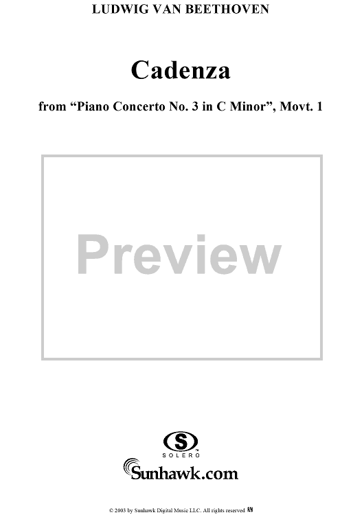 Digital Sheet Music for Cadenza to 1st Movt. of Piano Concerto No. 3 in C Minor, Op. 37 by Ludwig van Beethoven scored for Piano Solo; id:296337