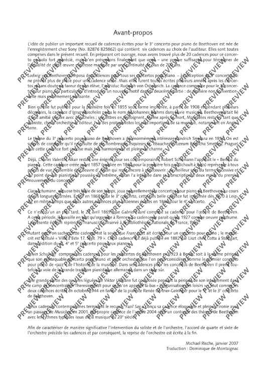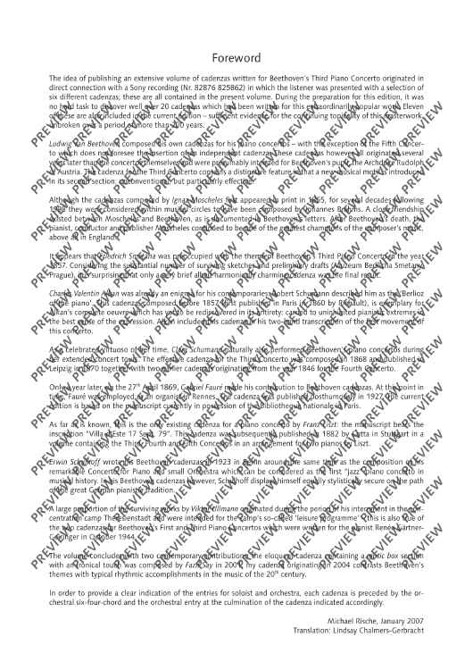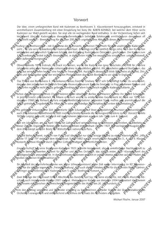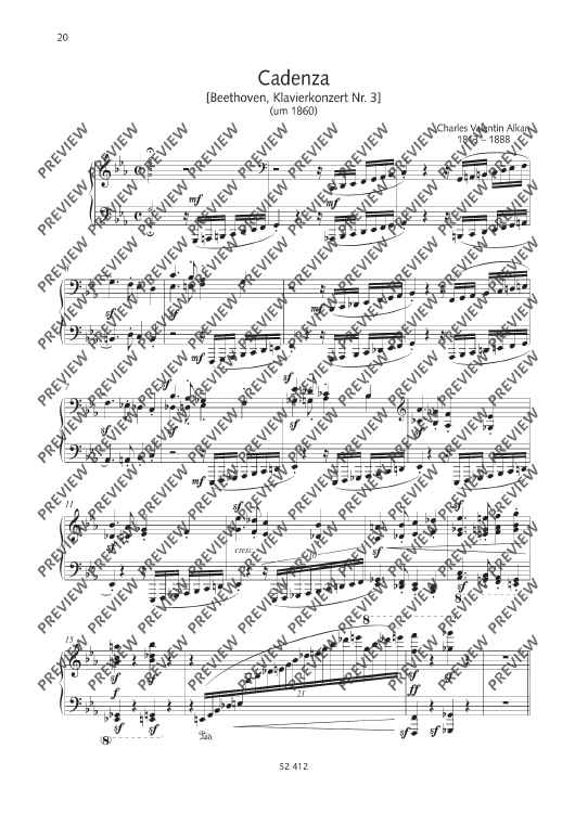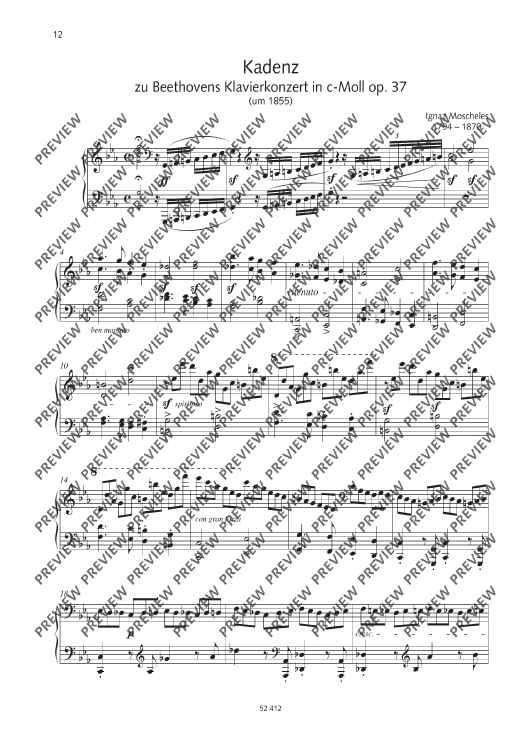 The volume unites 11 cadenzas from 200 years of music history to form one of the most frequently performed concertos in the piano literature, including several first publications. Among them are not solely highly virtuoso and, sometimes, even romantic lyrical tributes to the genius of classical music, but also cadences with a humorous and ironic touch: Fazil Say's cadence imitated - a music box! With cadences by: Charles Henri Alkan - Ludwig van Beethoven - Gabriel Fauré - Franz Liszt - Ignaz Moscheles - Michael Rische - Fazil Say - Erwin Schulhoff - Clara Schumann - Bedrich Smetana - Viktor Ullmann