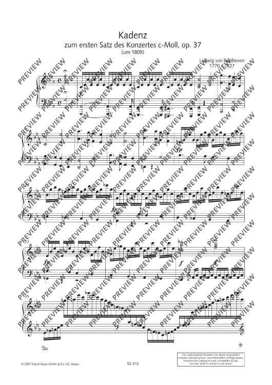 "Cadenzas in C minor" Sheet Music by Ludwig van Beethoven