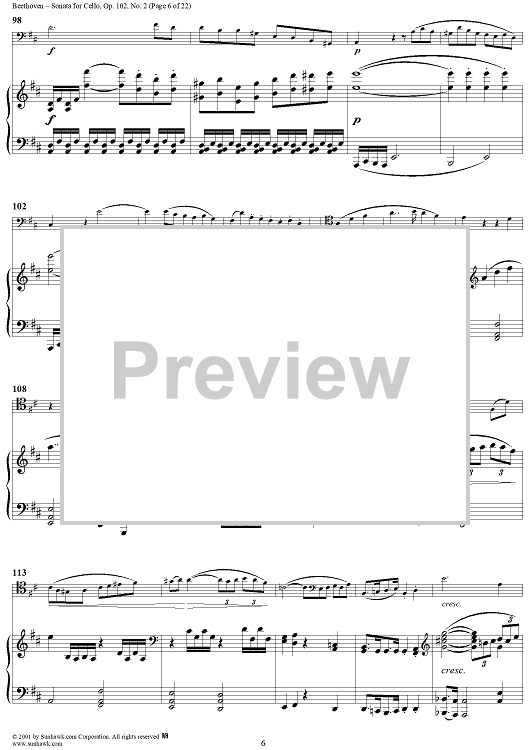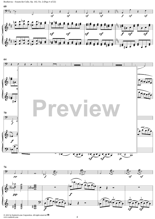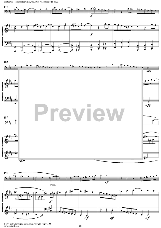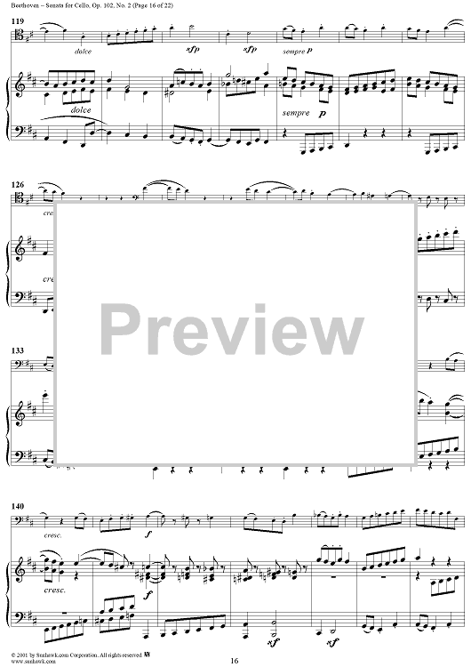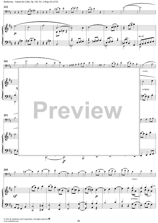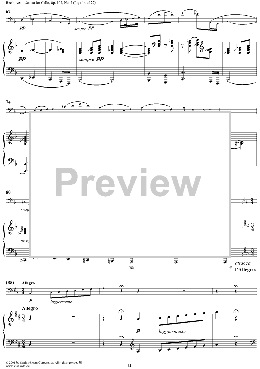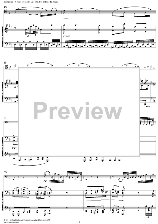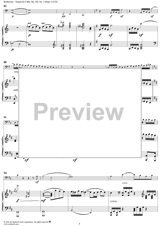 Digital Sheet Music for Cello Sonata No. 5 in D Major, Op. 102, No. 2 - Piano Score by Ludwig van Beethoven scored for Cello/Piano; id:309318