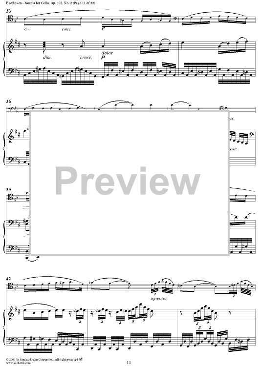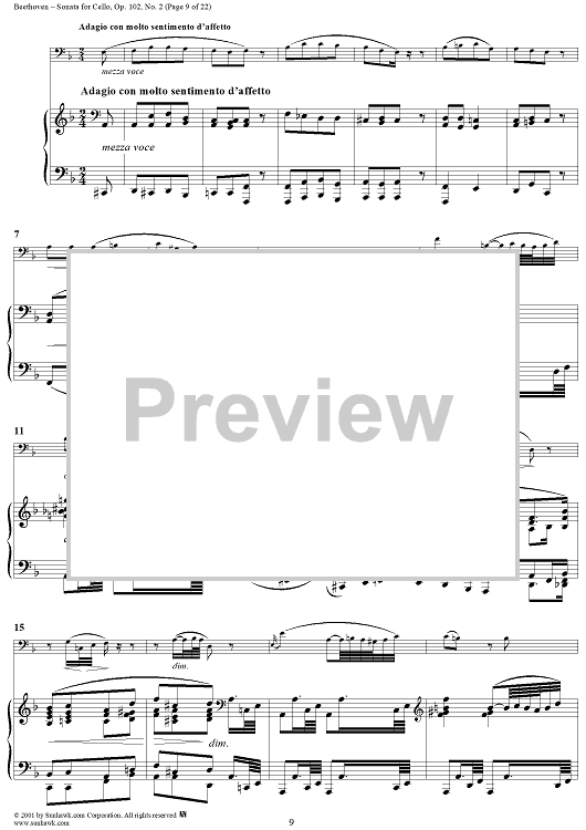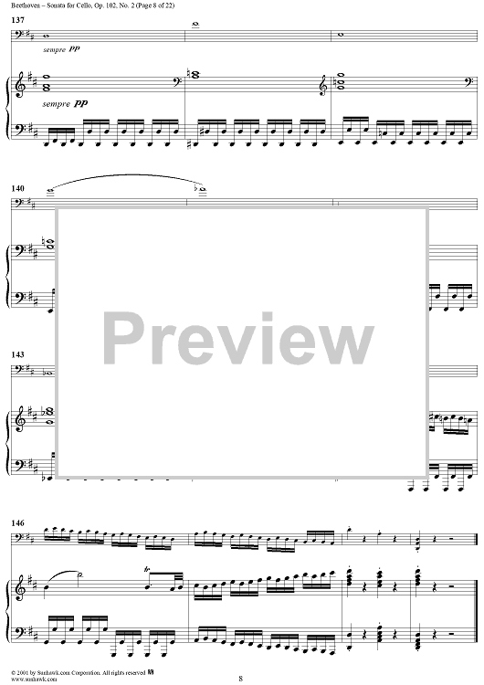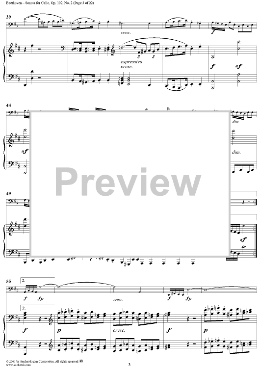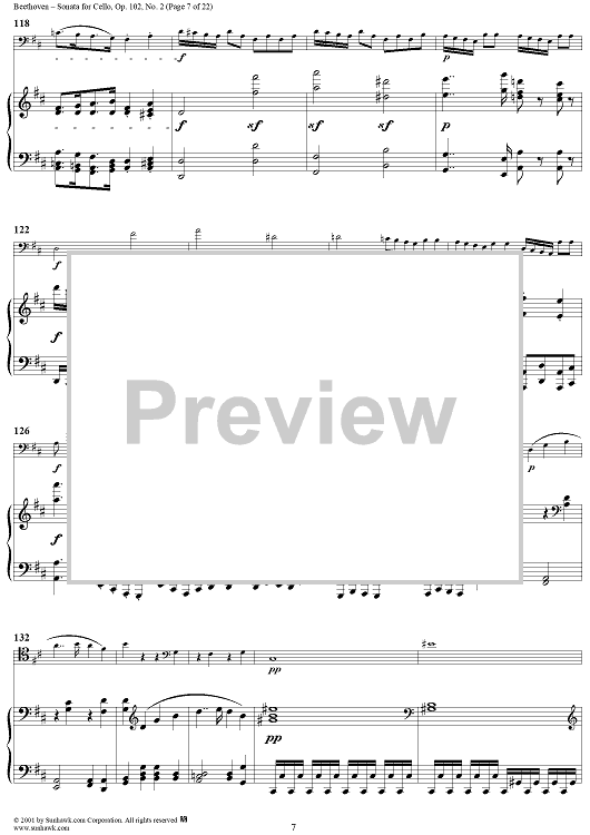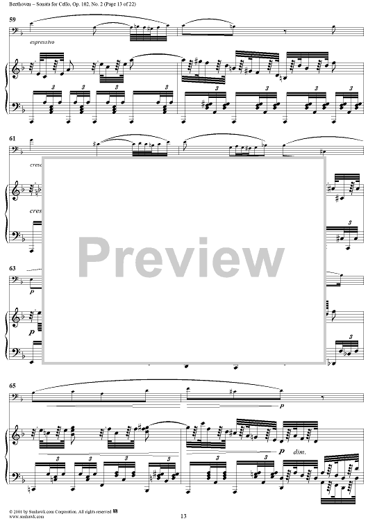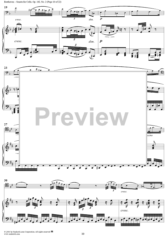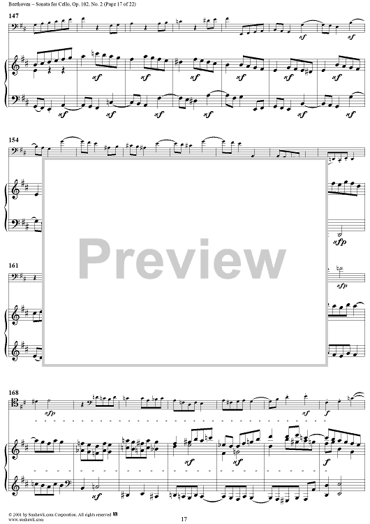 Digital Sheet Music for Cello Sonata No. 5 in D Major, Op. 102, No. 2 - Piano Score by Ludwig van Beethoven scored for Cello/Piano; id:309318