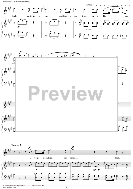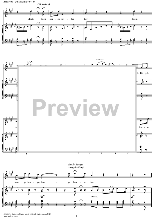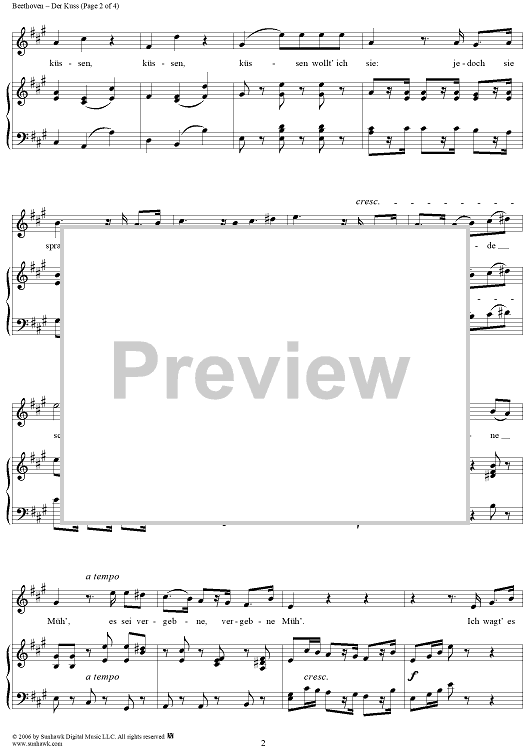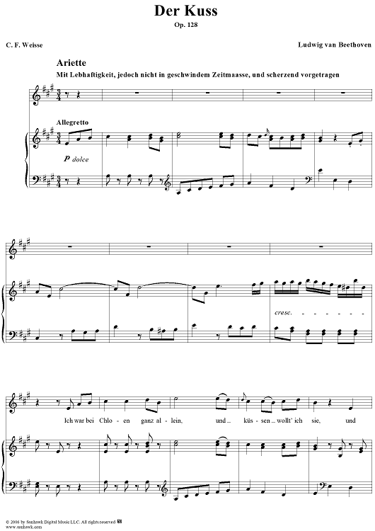 Digital Sheet Music for Der Kuss (Arietta), Op. 128 by Ludwig van Beethoven, Christian Felix Weisse scored for Voice/Piano; id:315415