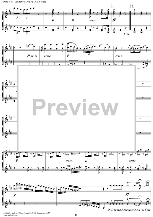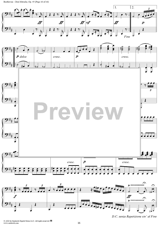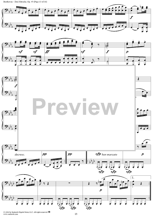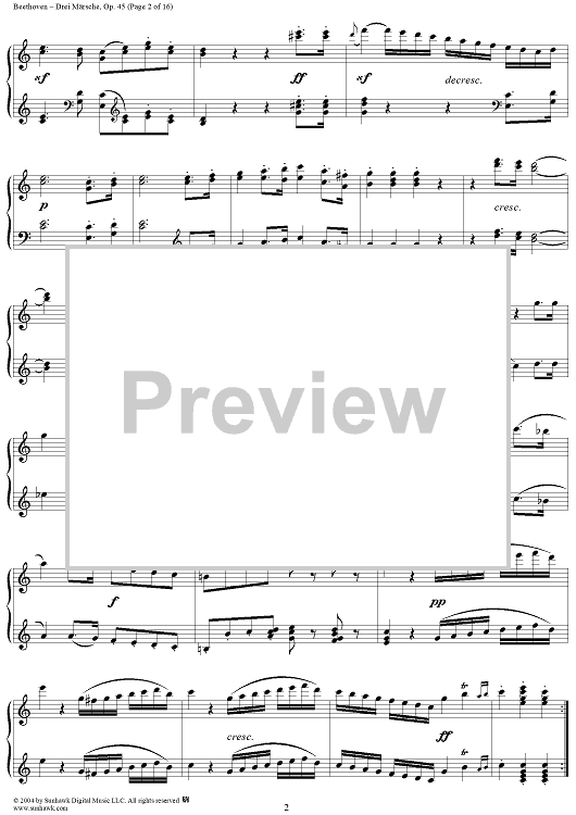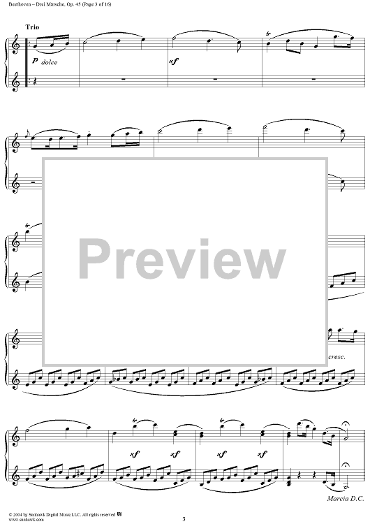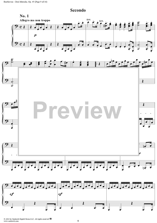 Digital Sheet Music for Drei Marsche, Op. 45 by Ludwig van Beethoven scored for 1 Piano, 4 Hands; id:294686