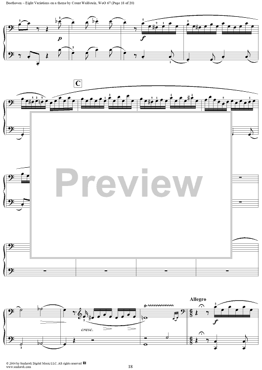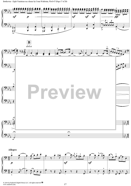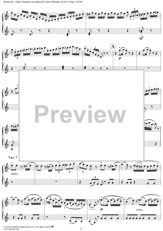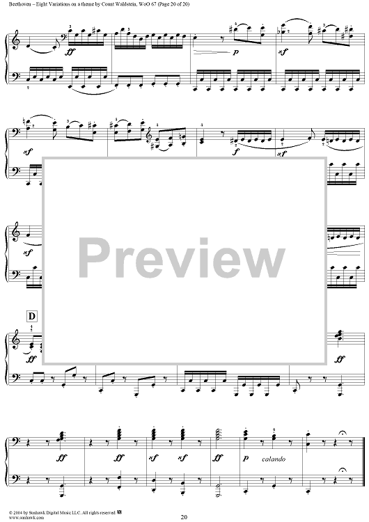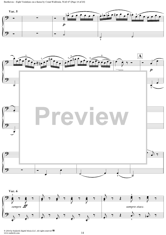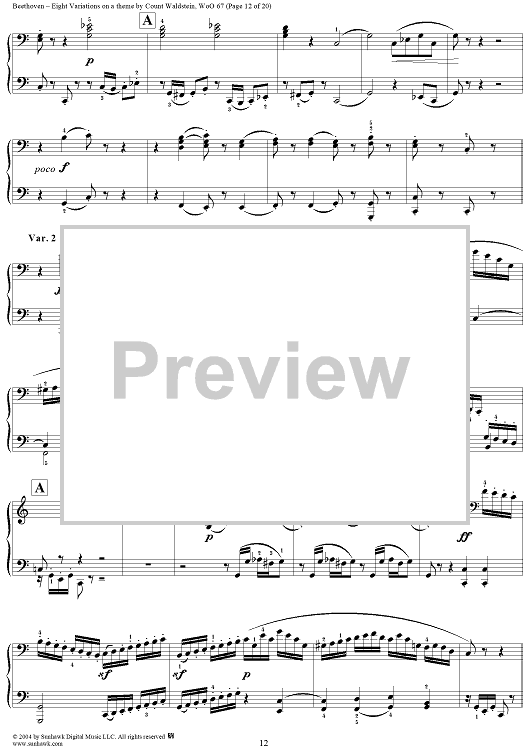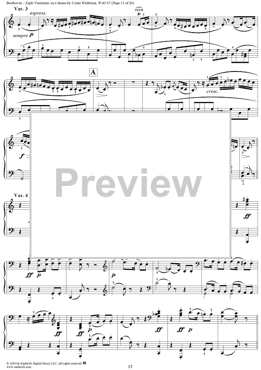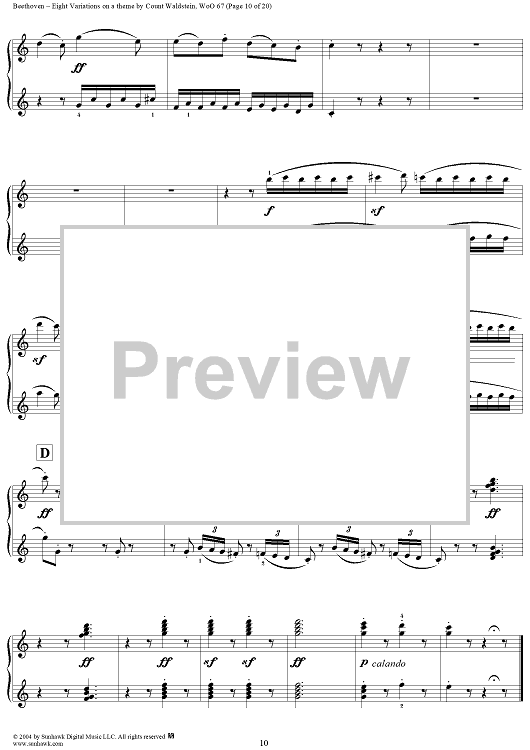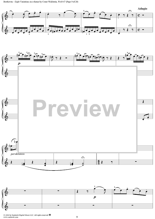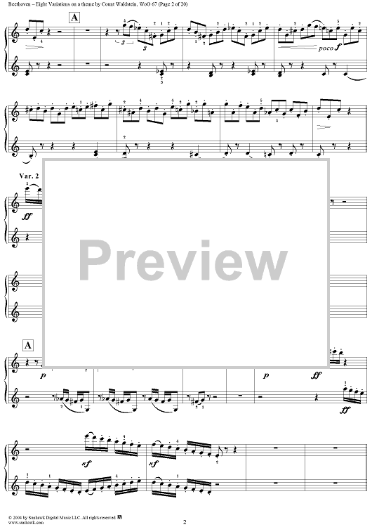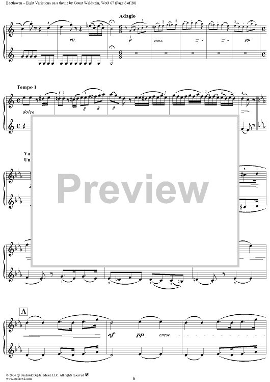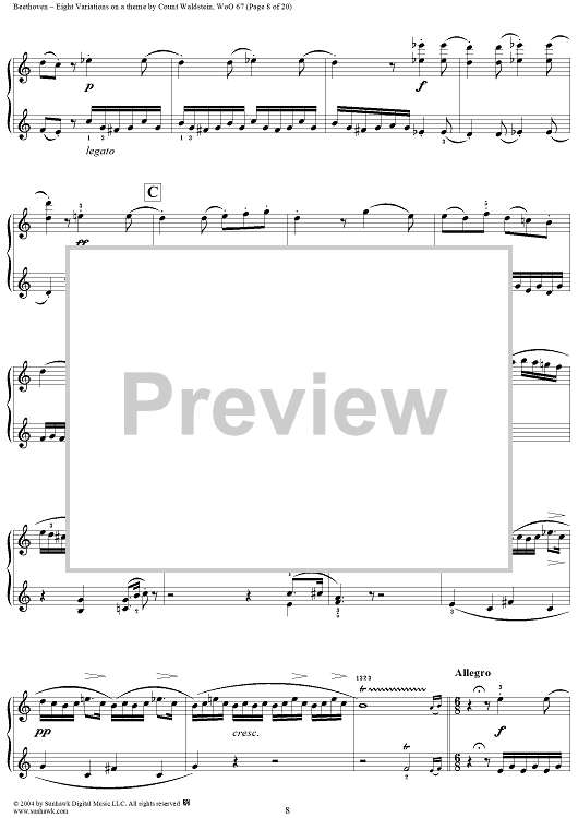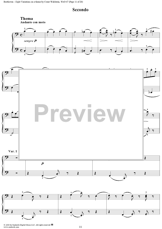 Digital Sheet Music for Eight Variations on a theme by Count Waldstein by Ludwig van Beethoven scored for 1 Piano, 4 Hands; id:297971