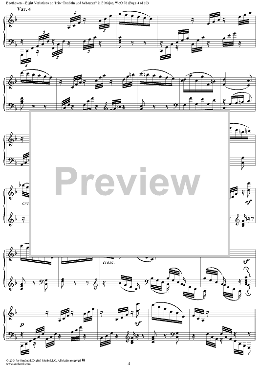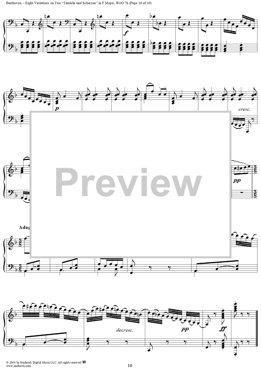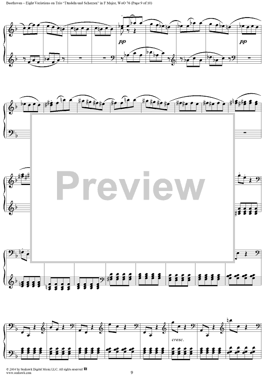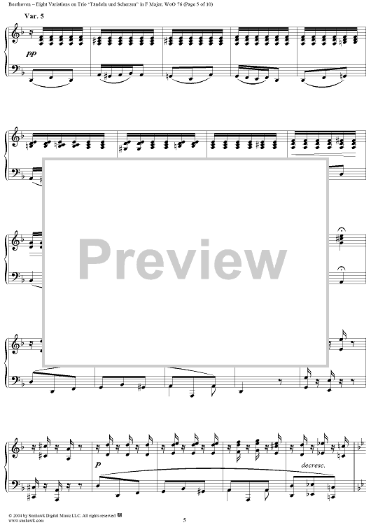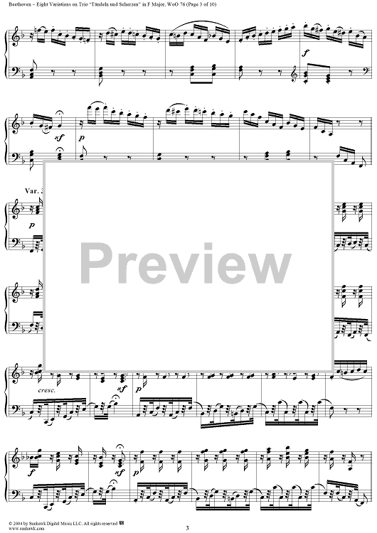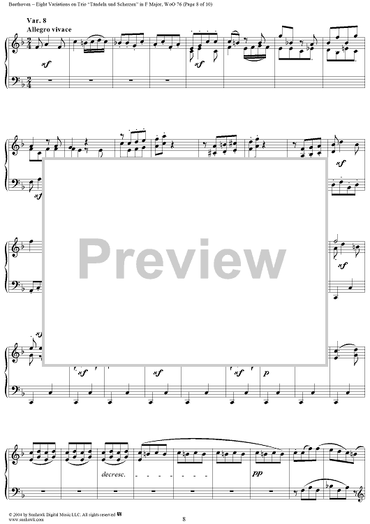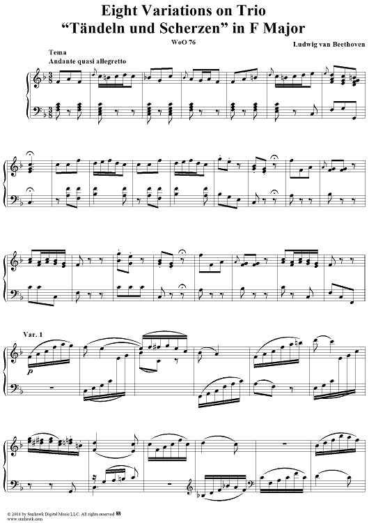 Digital Sheet Music for Eight Variations on Trio "Tändeln und scherzen" in F Major, WoO 76 by Ludwig van Beethoven scored for Piano Solo; id:241990