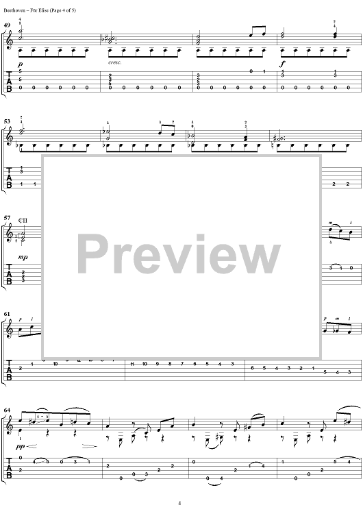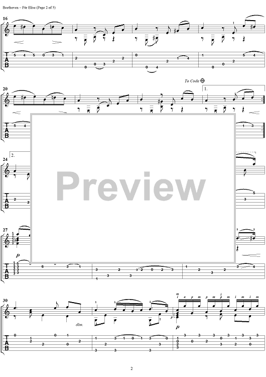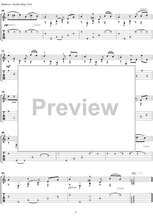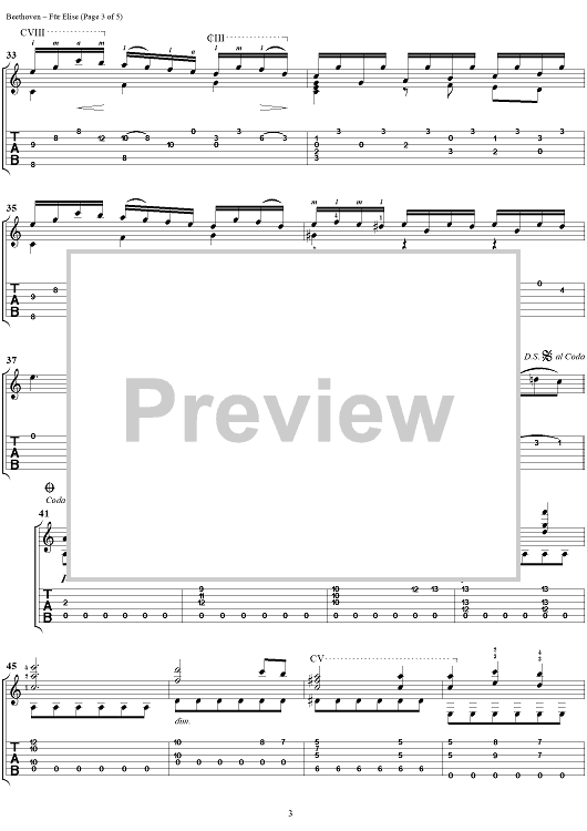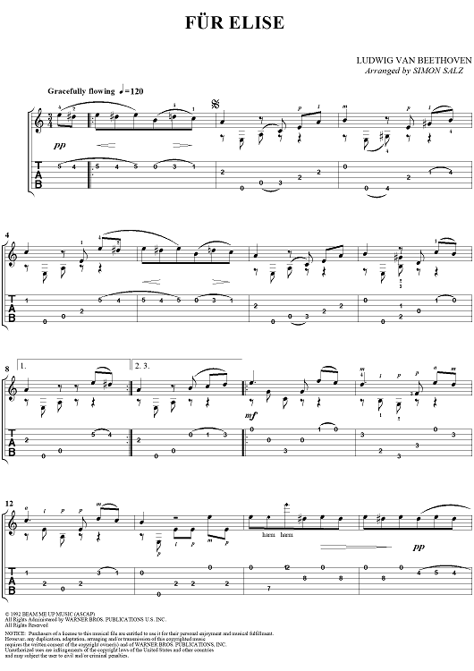 Digital Sheet Music for Für Elise by Ludwig van Beethoven, Simon Salz scored for Guitar Tab; id:283593