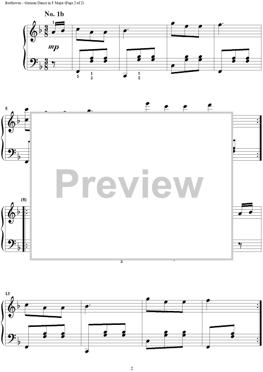 Digital Sheet Music for German Dance in F Major by Ludwig van Beethoven, Donald Beattie, Delayna Beattie scored for Easy Piano; id:297616