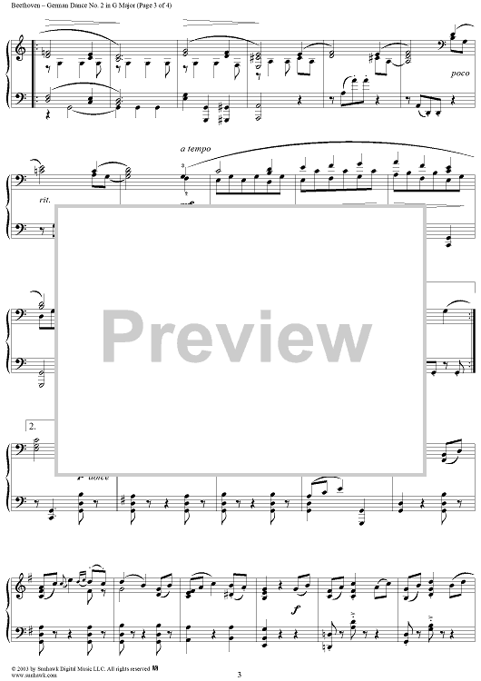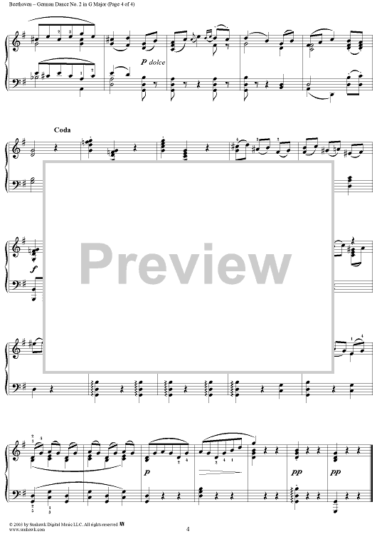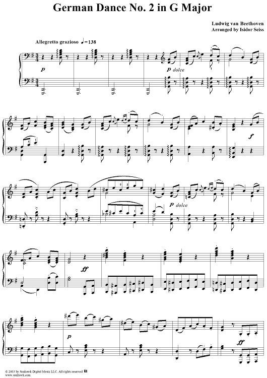 Digital Sheet Music for German Dance No. 2 in G Major by Ludwig van Beethoven, Isidor Seiss scored for Piano Solo; id:294307