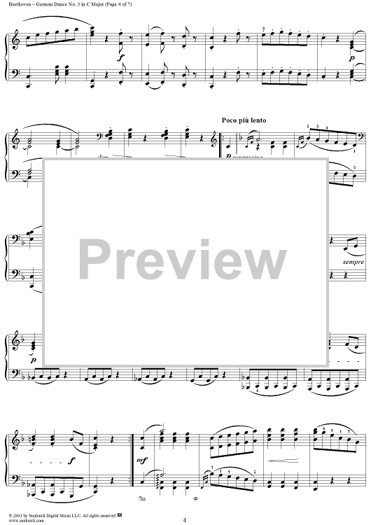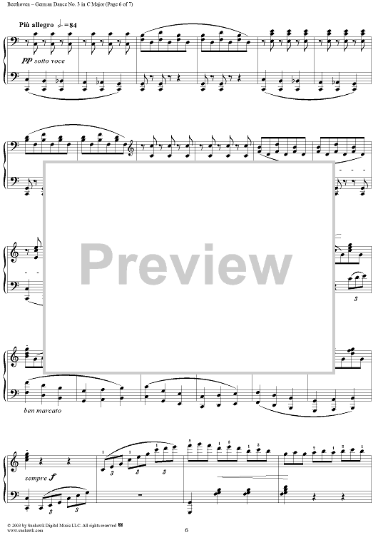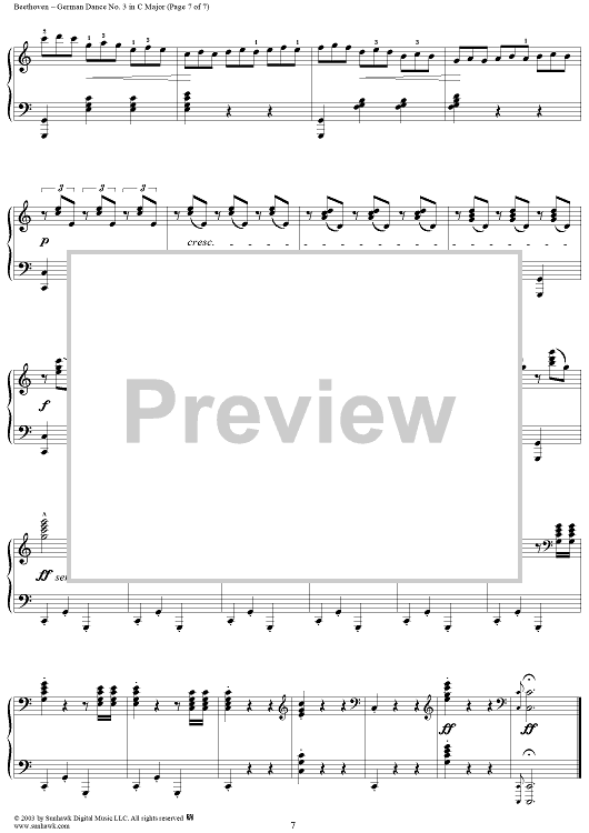 Digital Sheet Music for German Dance No. 3 in C Major by Ludwig van Beethoven, Isidor Seiss scored for Piano Solo; id:294308
