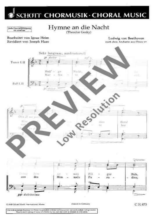 Digital Sheet Music for Hymne an die Nacht - Choral Score by Ludwig van Beethoven scored for Men's Choir (ttbb); id:471538