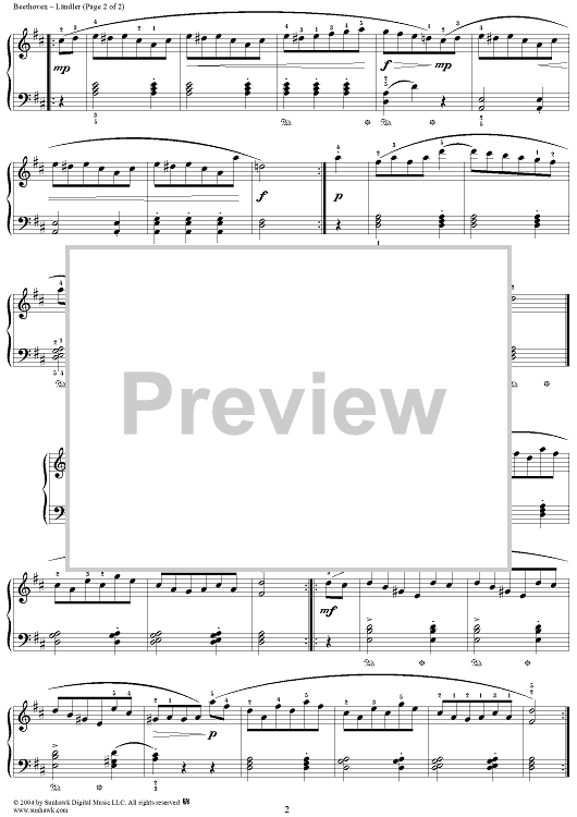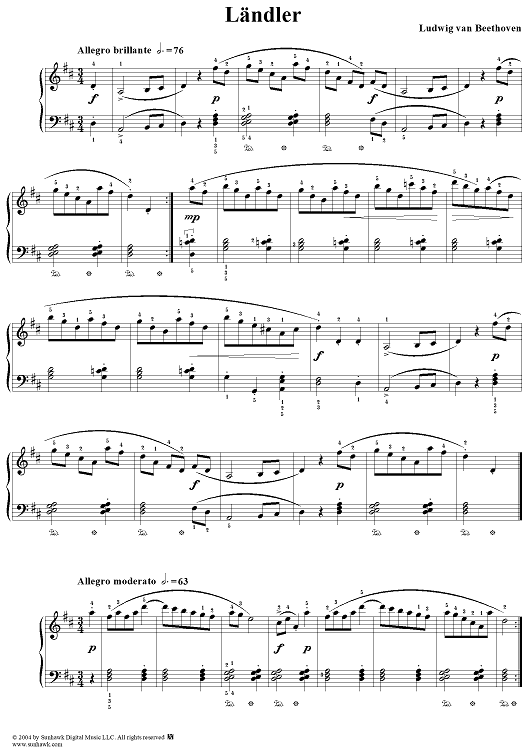 Digital Sheet Music for Ländler by Ludwig van Beethoven scored for Piano Solo; id:296725