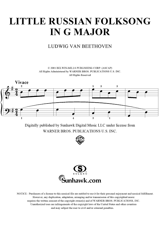 "Little Russian Folksong in G Major" Sheet Music by Ludwig van Beethoven