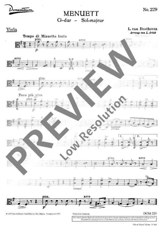 "Menuet G major - Viola" Sheet Music by Ludwig van Beethoven