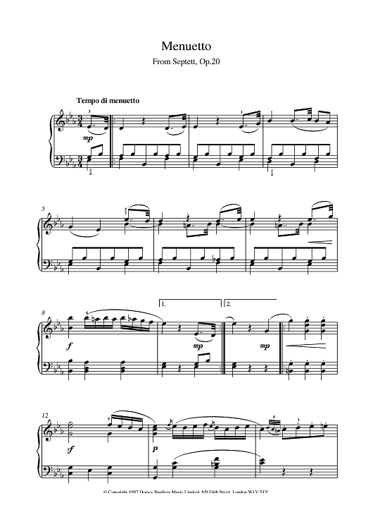 "Menuett From Septet Op.20" Sheet Music by Ludwig van Beethoven