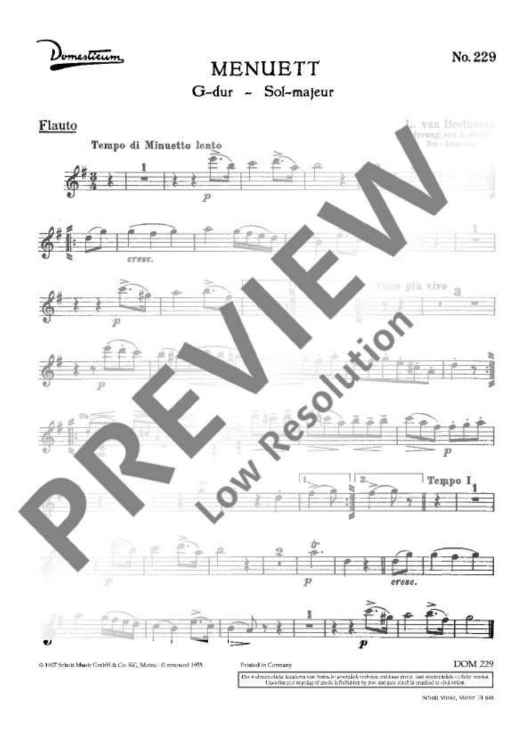 "Menuett G major - Score and Parts" Sheet Music by Ludwig van Beethoven