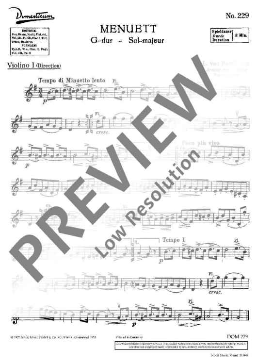 "Menuett G major - Violin I" Sheet Music by Ludwig van Beethoven