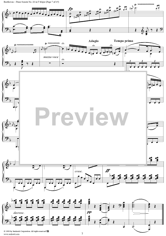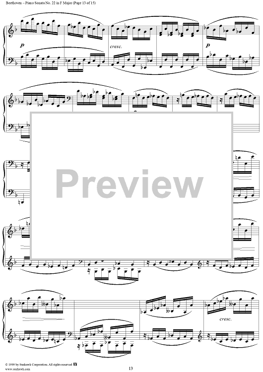 Digital Sheet Music for Piano Sonata No. 22 in F Major, Op. 54 by Ludwig van Beethoven scored for Piano Solo; id:263160