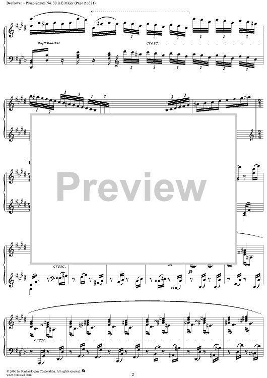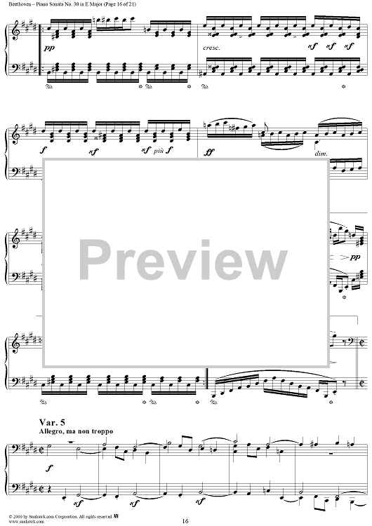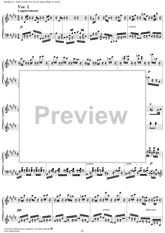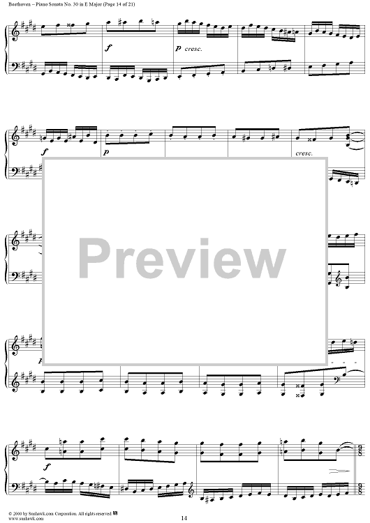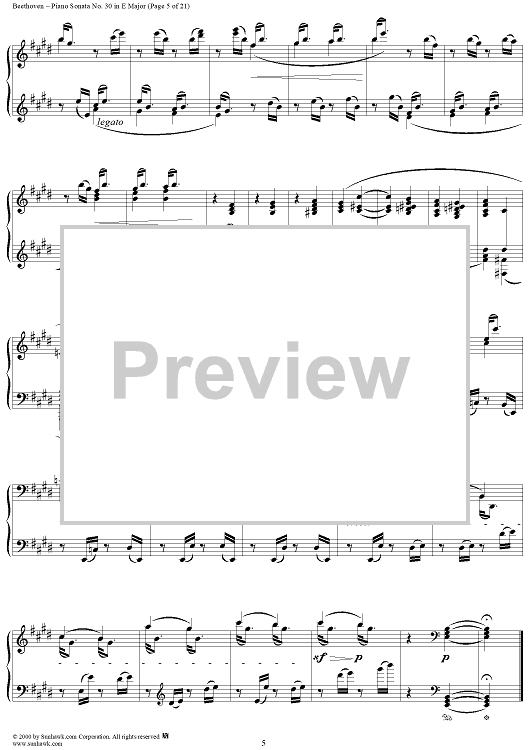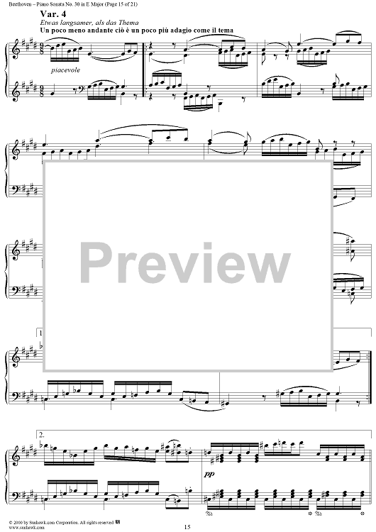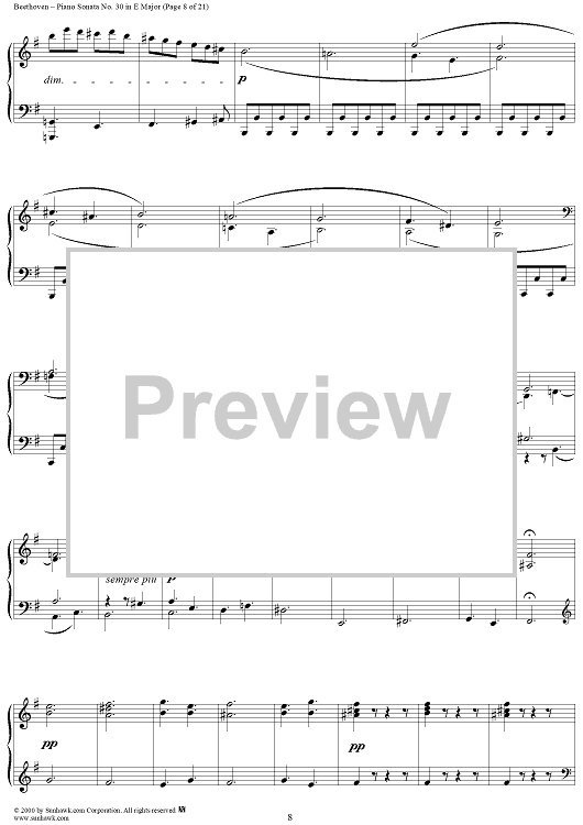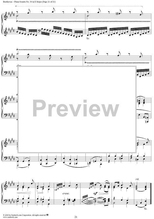 Digital Sheet Music for Piano Sonata No. 30 in E Major, Op. 109 by Ludwig van Beethoven scored for Piano Solo; id:265538
