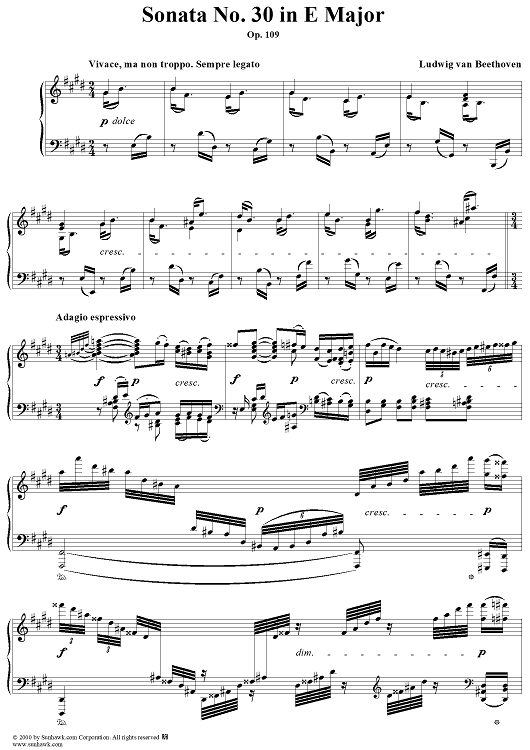"Piano Sonata No. 30 in E Major, Op. 109" Sheet Music by Ludwig van Beethoven