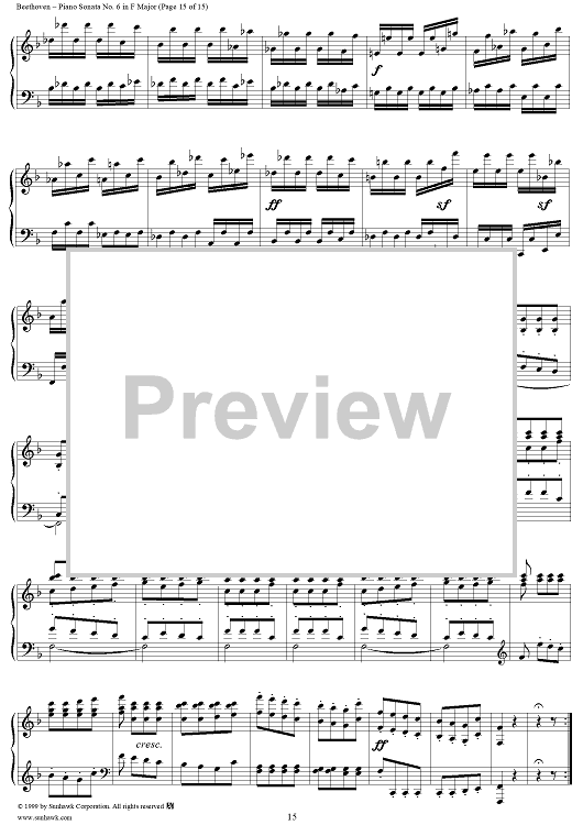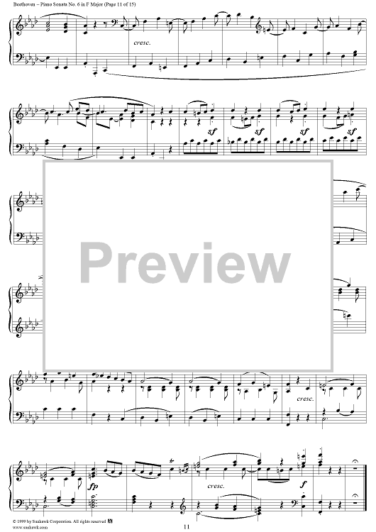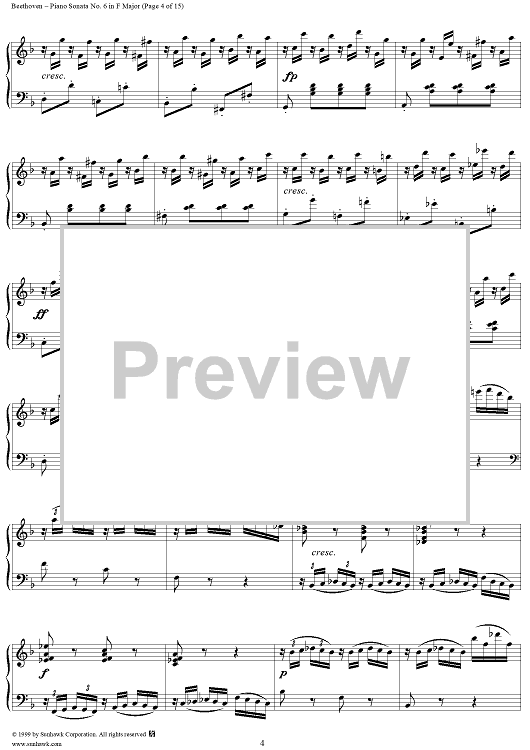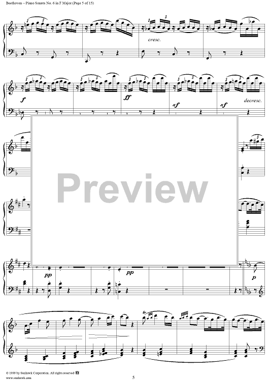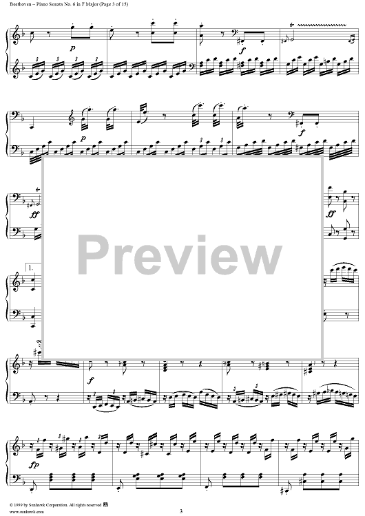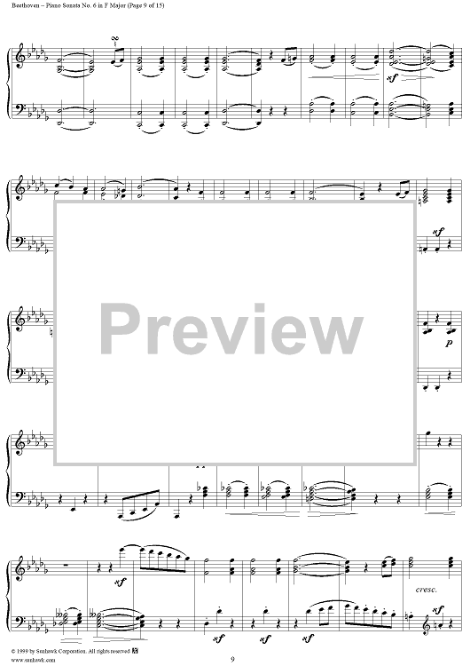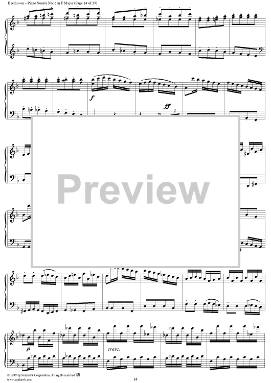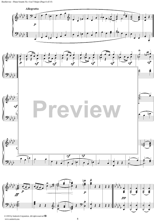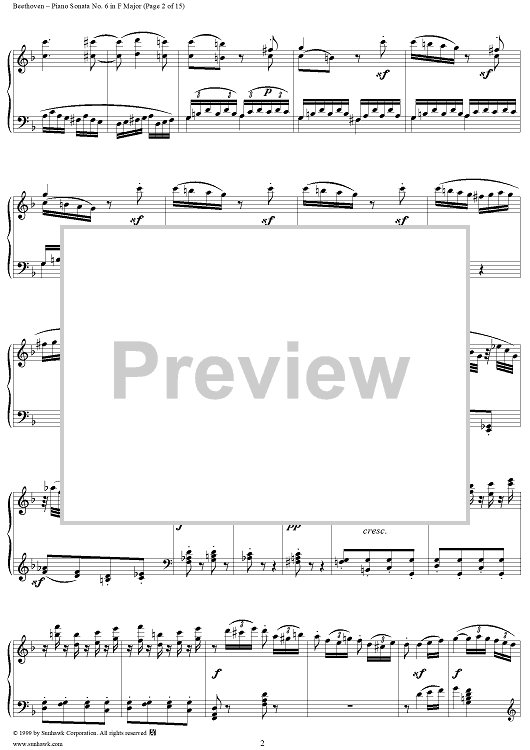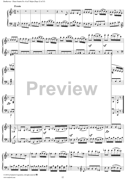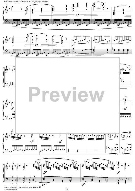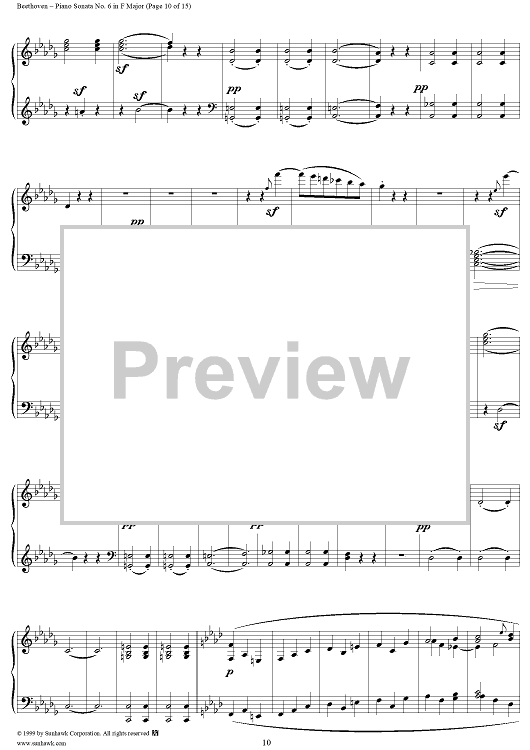Digital Sheet Music for Piano Sonata No. 6 in F Major, Op. 10, No. 2 by Ludwig van Beethoven scored for Piano Solo; id:262882